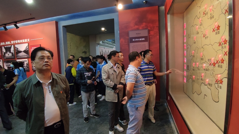 学习结束后,全体人员跟随着人流参观湘南起义纪念馆。纪念馆内,湘南起义的历史画卷被一篇篇文献,一张张照片,一个个浴血奋战的浮雕,一件件珍贵的历史文物呈现在眼前。大家缓步前行、不时驻足良久,那个血与火的峥嵘革命岁月就像发生在眼前。无数革命先烈前赴后继以牺牲为代价让我们感受着中国共产党为人民幸福、民族解放浴血奋战、舍生忘死的崇高革命精神,也为自己生活在这片革命热土而感到骄傲和自豪。
