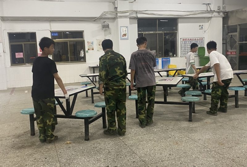 (通讯员 曹会平)2022年 9月7日16:30,智能制造系一营七连电子技术22301班圆满完成学院食堂更换旧桌椅的任务。