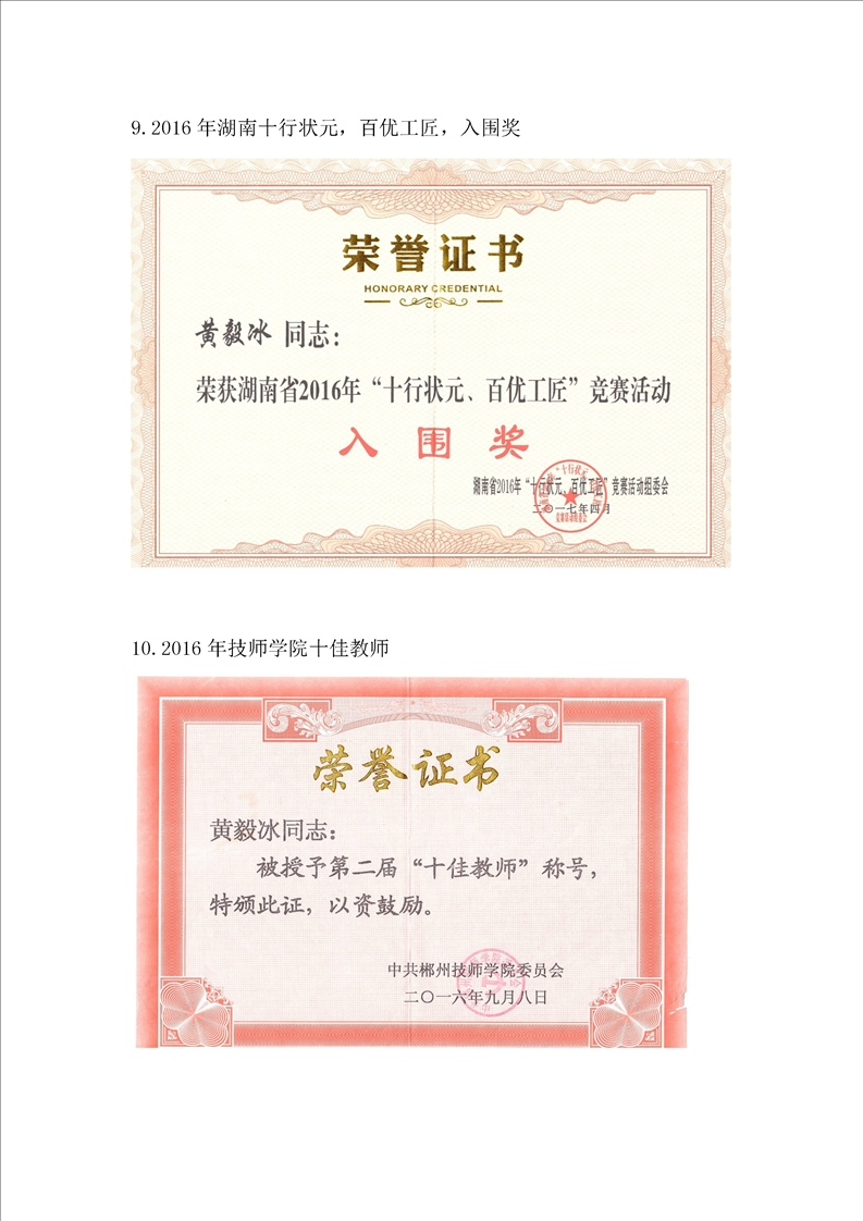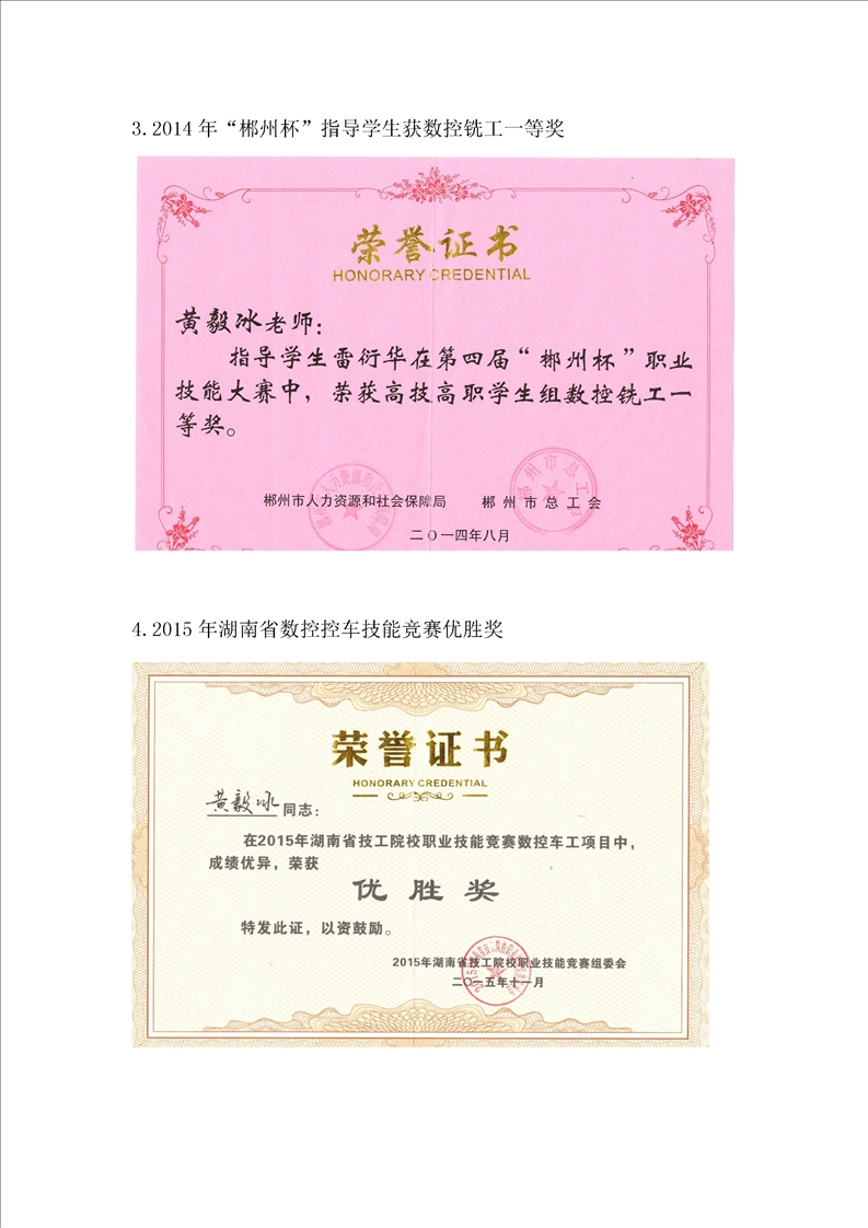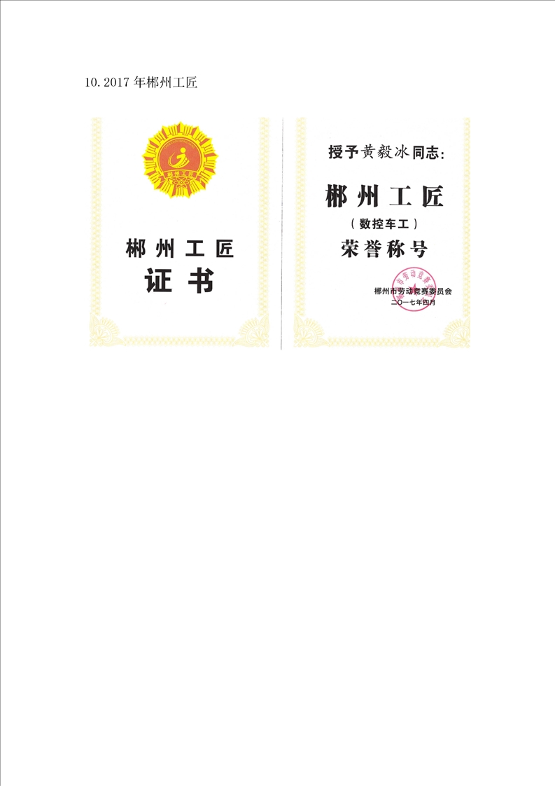 机械工程系教师黄毅冰、李郴被授予 “郴州工匠”荣誉称号