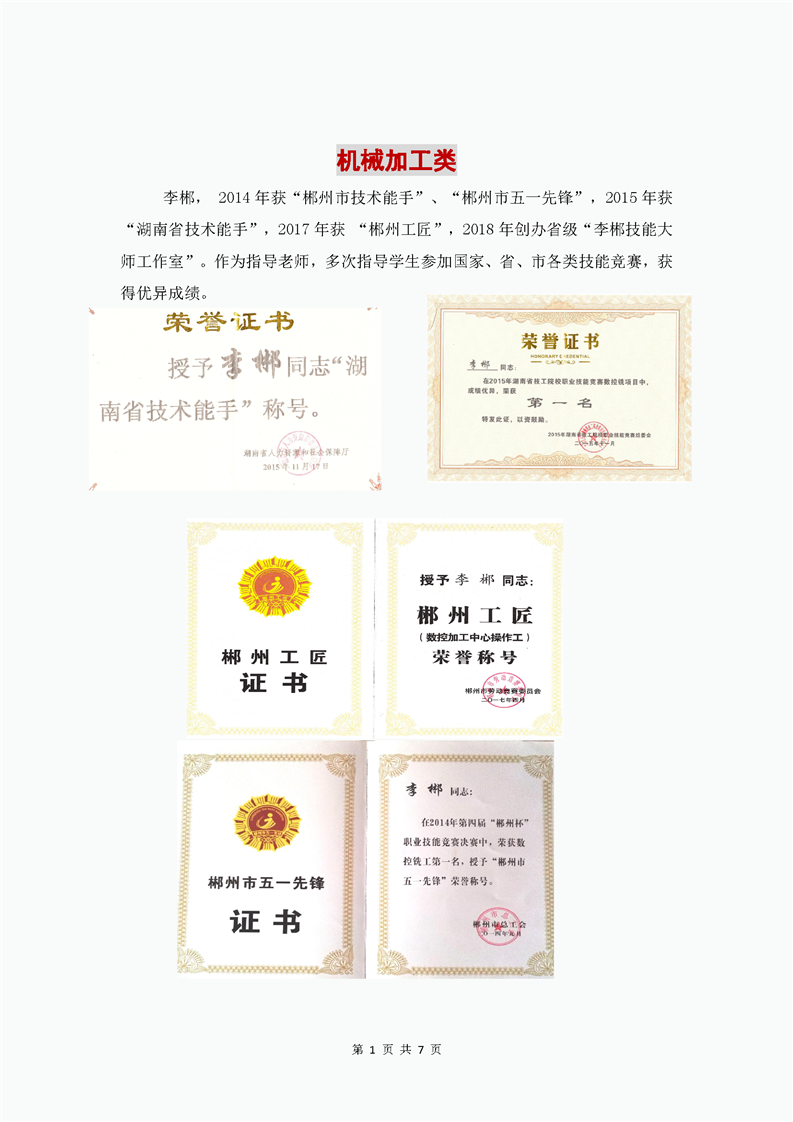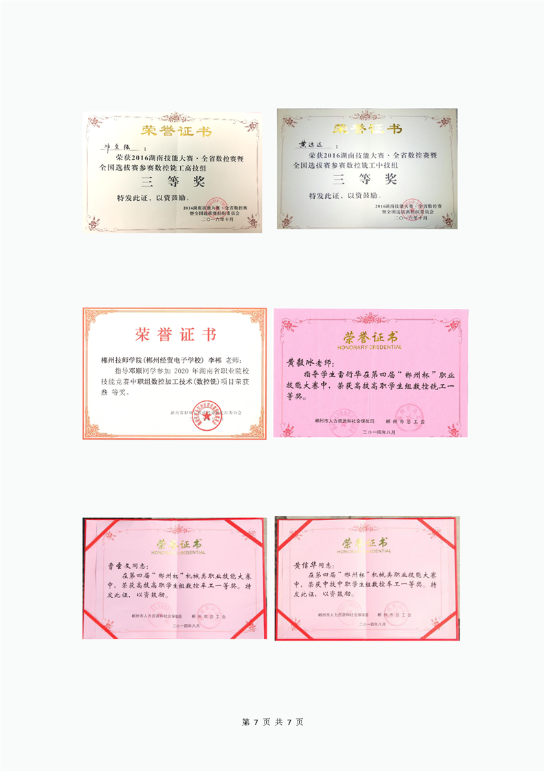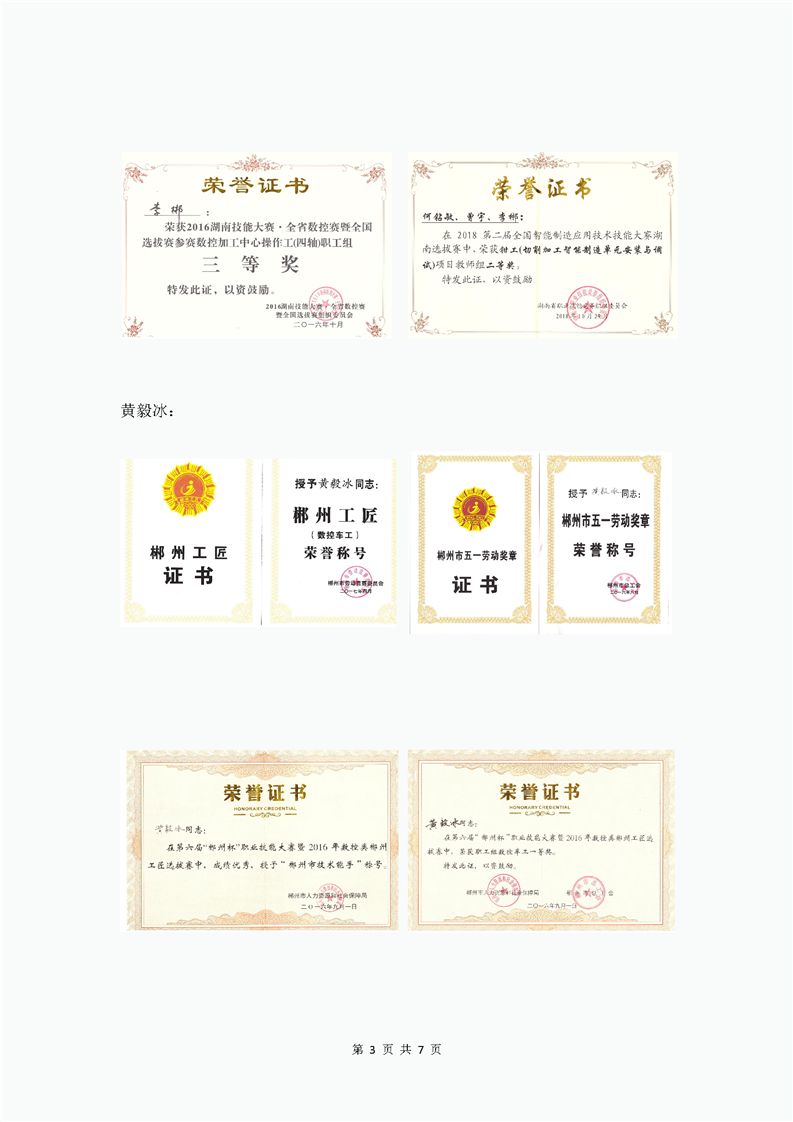 机械加工类荣誉展示