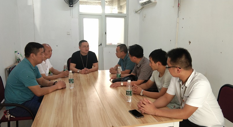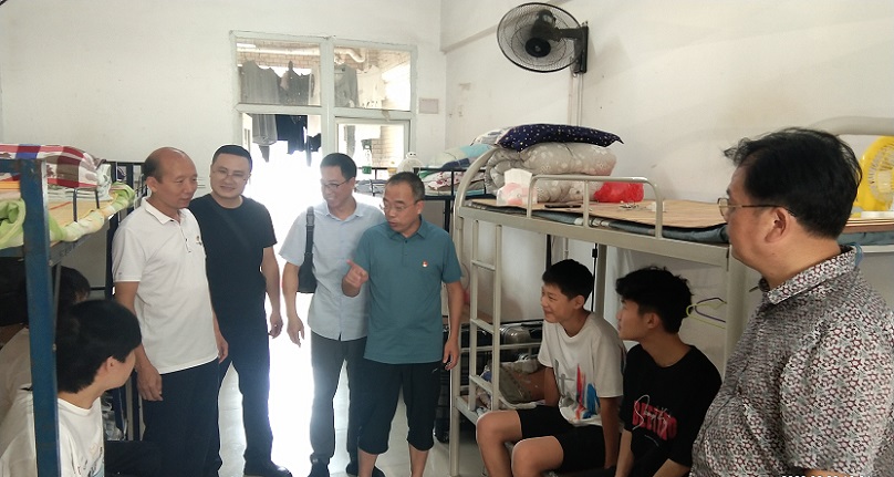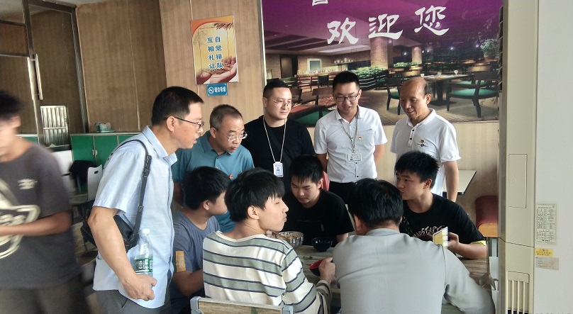 抵达湖南炬神电子有限公司,在企业人事部经理唐俊峰、企业党支部支委成员钟鑫陪同下,支部书记李会亮、系主任段盛琦带领全体党员和带队班主任走进学生宿舍与同学们进行亲切交谈,详细询问了同学们的思想动态以及在企业的生活、工作情况,叮嘱大家注意寝室卫生、强化安全意识。
