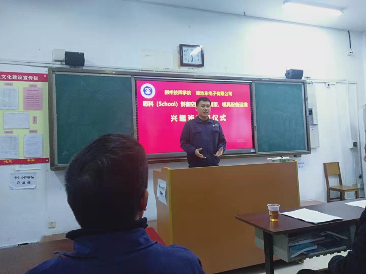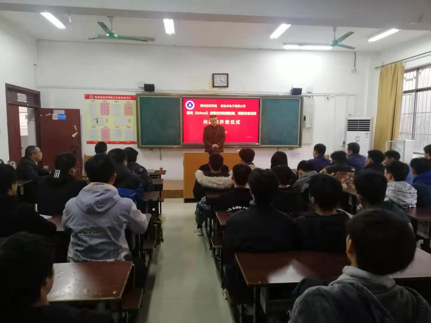 思科(school)创客空间是我系与郴州津地本电子有限公司于2019年共同合作成立,旨在着力提升学生的专业素养、创新意识和创新能力。本届制图制板、模具设备运维兴趣班是在上期线束技术项目培训成功经验基础上根据企业技术需求再次开设,全部课程由企业工程技术人员利用晚自习和周末课余时间授课。