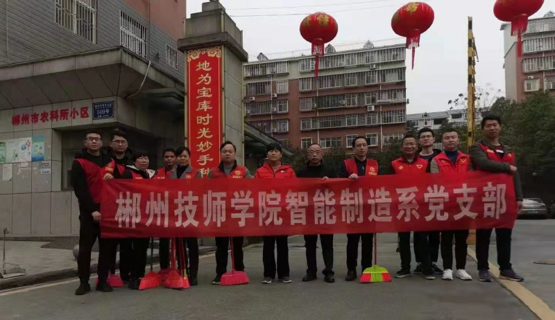 (通讯员 李友敏)为积极响应爱国卫生运动号召,给市城区居民营造整洁卫生、幸福宜居的生活环境。3月5日上午,智能制造系党支部组织部分教职工赴郴州市农科所小区开展“周末卫生日,让郴州更美丽”卫生大扫除志愿服务活动。系主任段盛琦组织并参与活动。