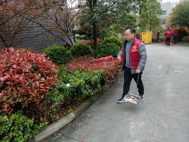 在市农科所小区,志愿者们身穿红色马甲,手持塑料袋、垃圾钳等清扫工具,沿途认真清扫路面垃圾、碎纸屑、烟头、落叶等杂物,深入卫生死角清扫垃圾。经过一上午的努力,路面变得干净整洁,整个小区的环境卫生焕然一新。