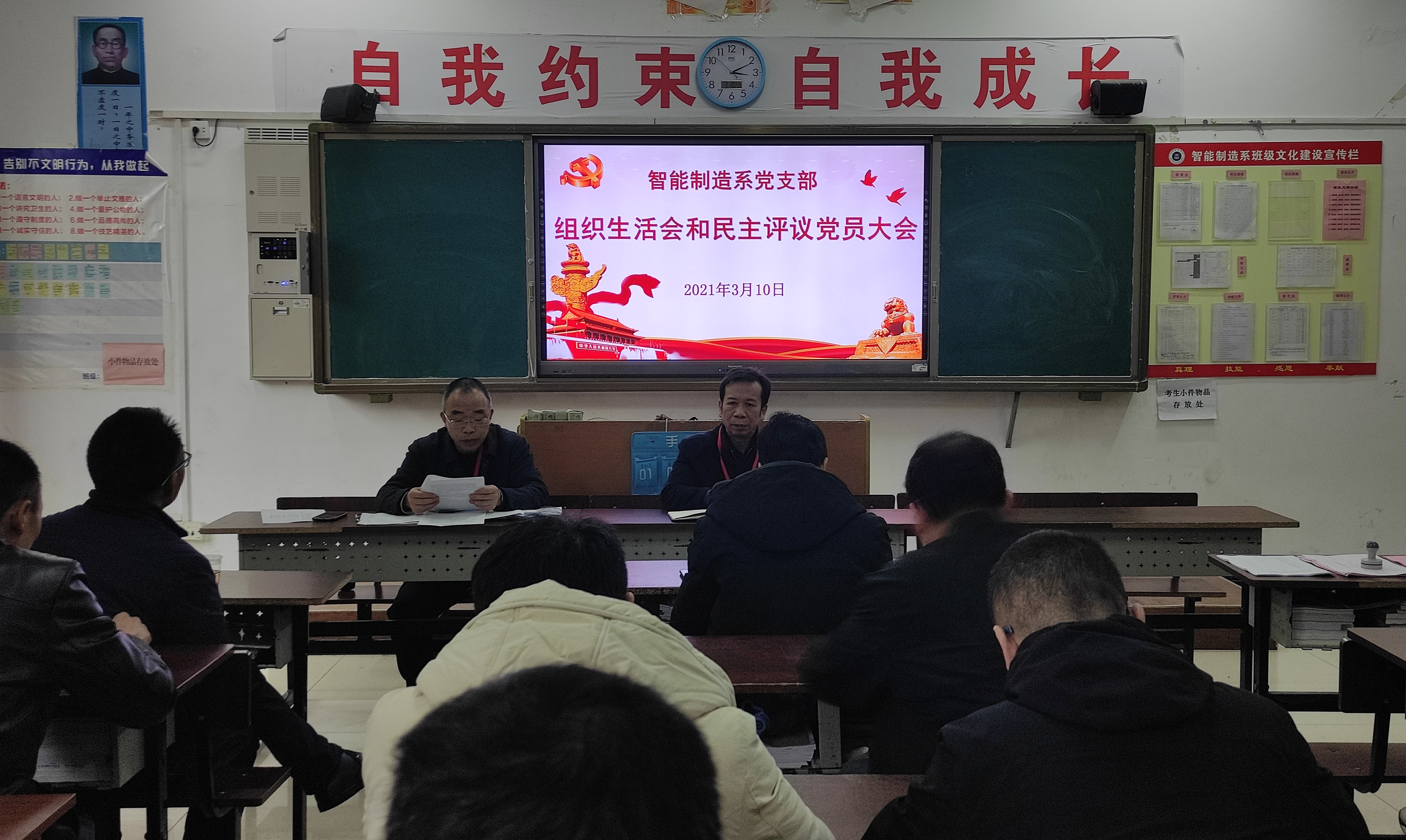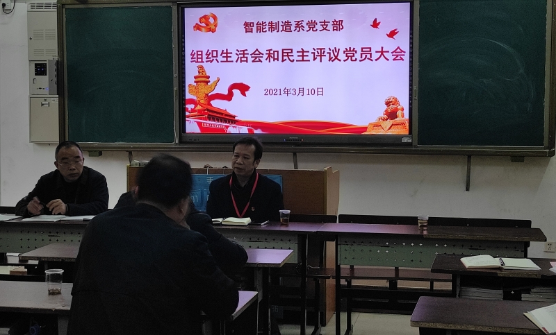 (通讯员 张俊召)2021年3月10日下午,智能制造系党支部在教学楼207教室召开全体党员大会,组织召开支部组织生活会和民主评议党员。学院党委委员、副院长何沈文出席会议,支部副书记段盛琦主持会议。