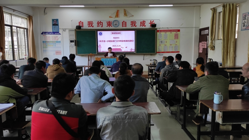 民主测评结束后,段盛琦又集中组织传达学习《谢革非同志在2021年春季开学教职工大会上的讲话》、《关于信息中心巡察情况的通报》、《郴州技师学院学生安全管理责任规定》、《关于进一步健全部门工作例会制度的通知》、《2021年“4.15”国家安全日宣传教育活动实施方案》、《郴州技师学院2021年工作要点》等文件精神。