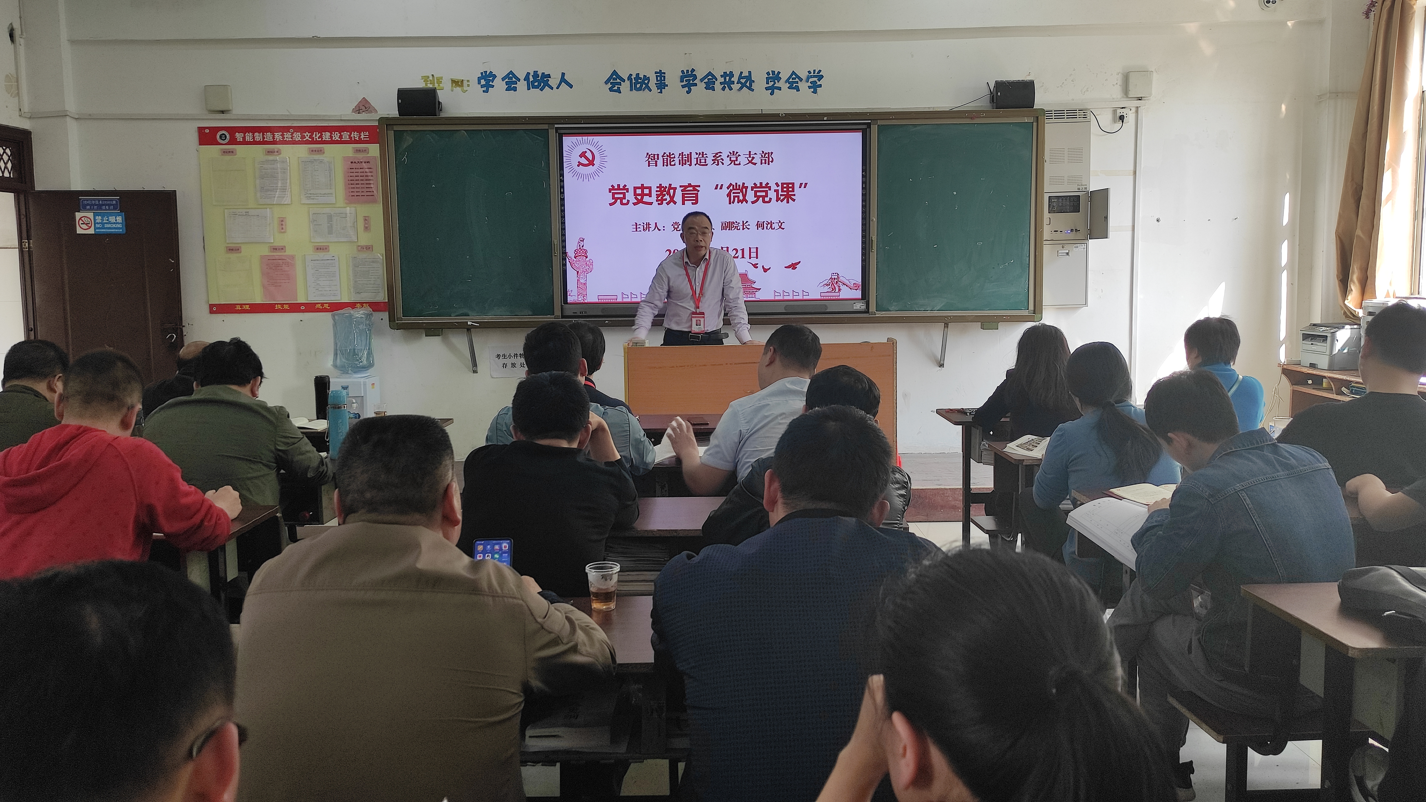 (通讯员 张俊召)根据学院党史学习教育工作部署要求,4月21日下午,智能制造系党支部开展党史学习教育“微党课”活动,由学院党委委员、副院长何沈文讲授《党的实事求是思想路线思想溯源——毛泽东实事求是思想的文化渊源和思想源头》微党课。活动由支部副书记、系主任段盛琦主持,全体教职工聆听了党课。