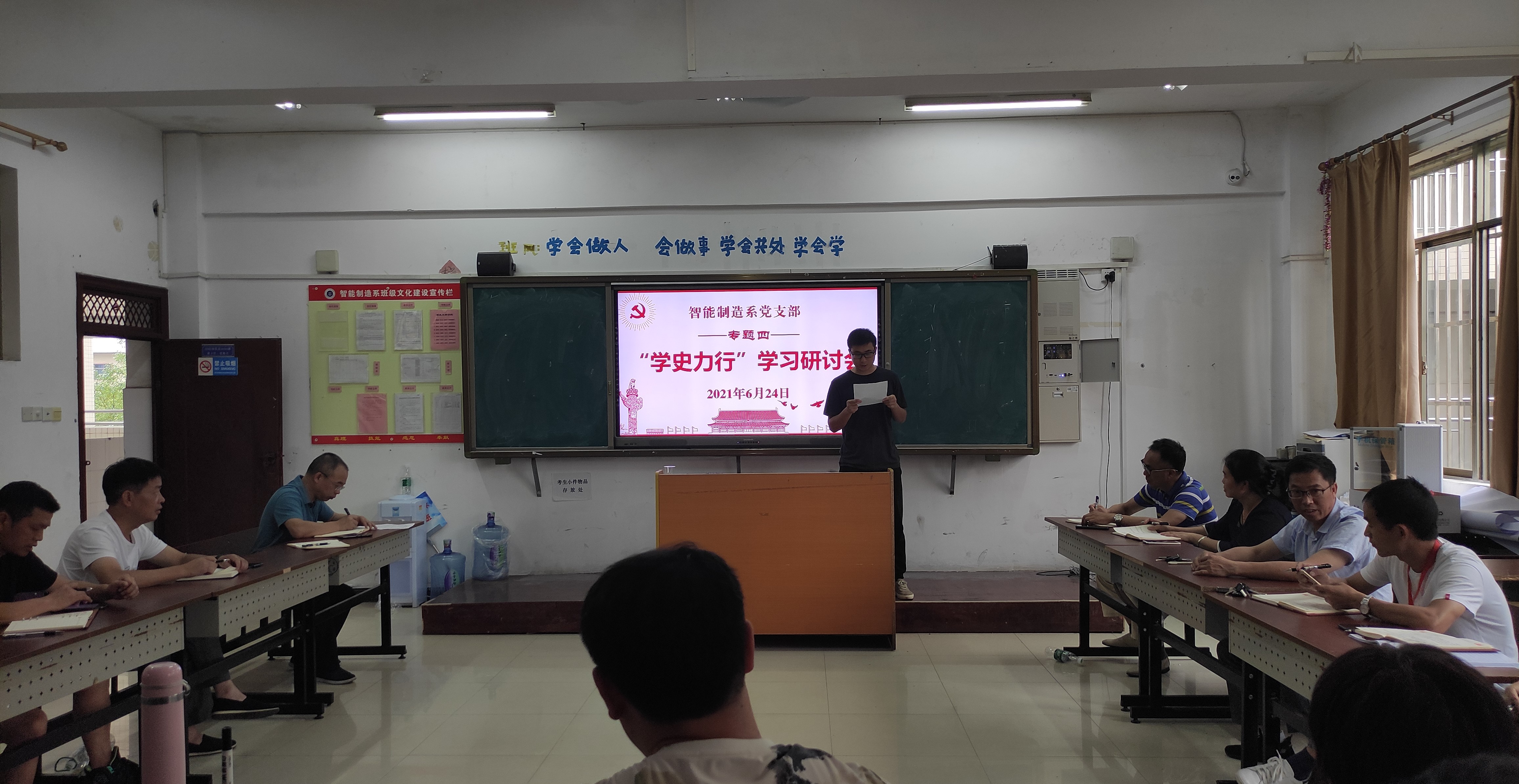 (通讯员 张俊召)6月24日下午,智能制造系党支部在教学楼310教室开展党史学习教育专题四学习研讨活动。活动由支部副书记、系主任段盛琦主持,全体党员参加会议。