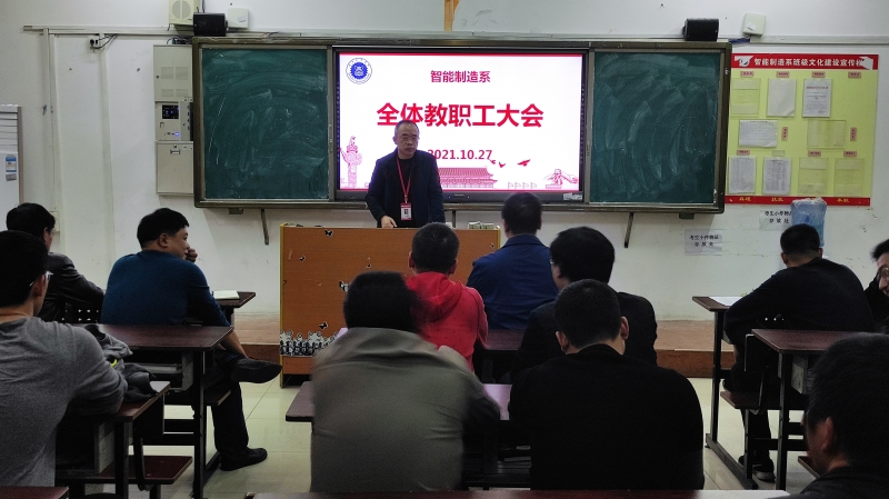 (通讯员 张俊召)10月27日下午,智能制造系在教学楼308教室召开全体教职工会议,组织学习相关文件精神。会议由系主任段盛琦主持,全体教职工参加会议。